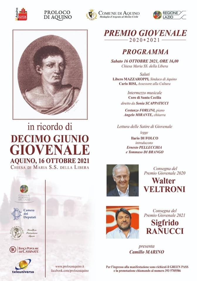 Torna ad Aquino il premio Giovenale, dopo l’anno di pausa legato all’emergenza Covid.