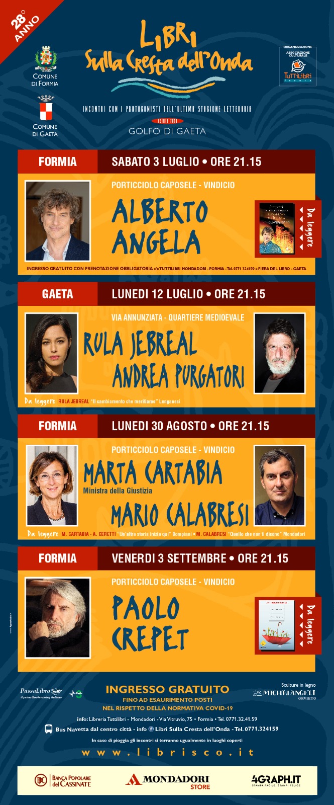 Ventottesima edizione della rassegna “Libri sulla cresta dell’onda”, una manifestazione di grande prestigio che vanta nel suo albo d’oro i noi più prestigiosi del giornalismo e della letteratura.